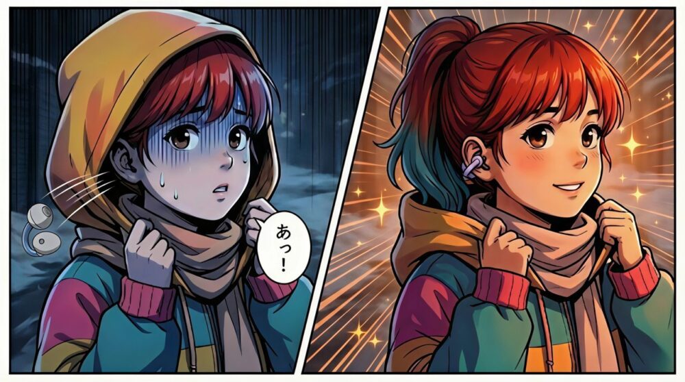 FreeClip 2の「着けていないような無重力感」は確かに進化していました。しかし、冬場の早朝ウォーキングで発生する「ある事故」への不安だけは、初代から解消されていませんでした。
